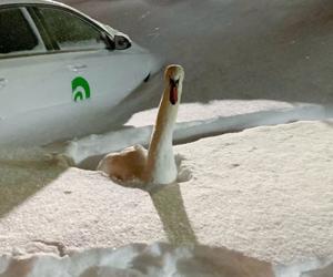 A Toronto swan got trapped in a parking lot during the city’s biggest snowstorm.