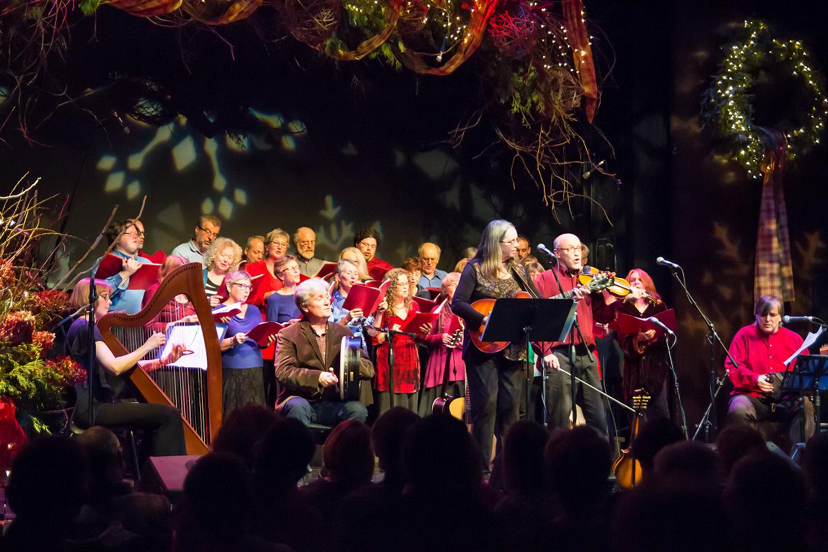 This year’s concert once again saw Hoffman, Newman, and Fortin performing as Carried Away along multi-instrumentalist Michael Ketemer and Celtic harpist Tanah Haney, as well as the 30-voice Convivio Chorus led by Newman, and Driedger with his youth performers The Claveer Cousins (Cora Lai, Iris Lai, Charlie Watson and Meara Watson).