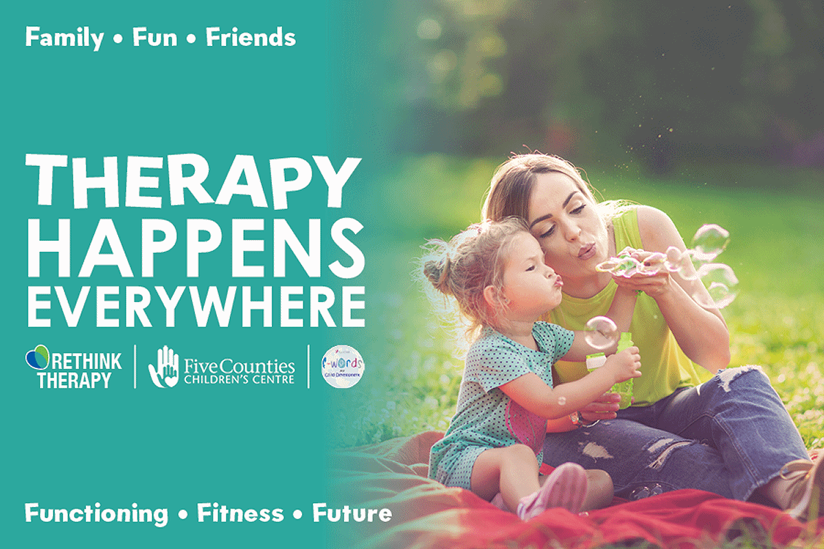 This simple but powerful message — therapy happens everywhere — is at the root of the new Rethink Therapy campaign that Five Counties is promoting to its families.