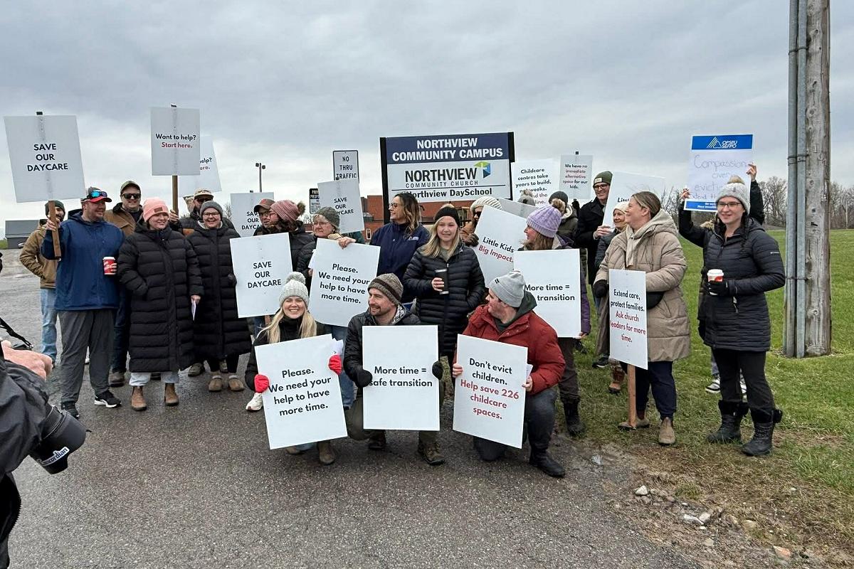 On Sunday (April 19), parents and other supporters gathered outside Northview DaySchool at its long-time home in Northview Community Church at 1000 Fairbairn Street to raise awareness and ask the church board for an extended closure timeline.